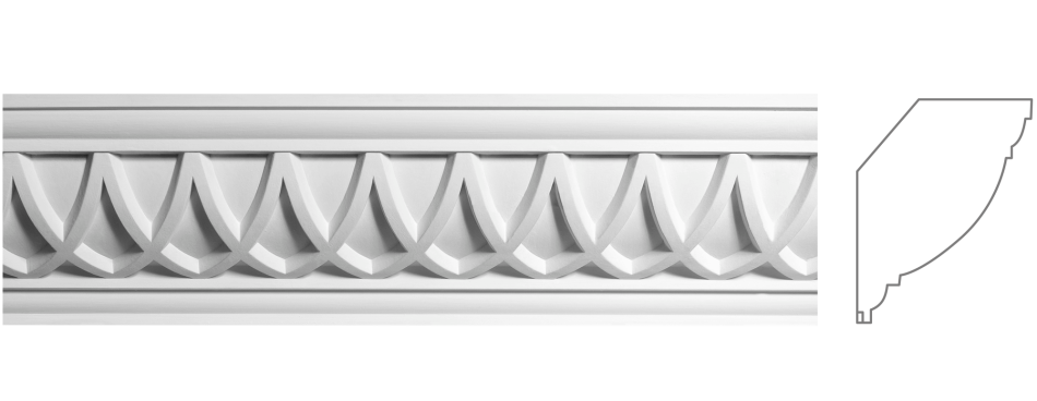 Карниз К-220 додає інтер'єру величавої класичної архітектурної розкіші. Його драпіровано-хвилясті елементи та багаті органічні форми акцентують архітектурні лінії, надаючи простору почуття мистецької досконалості, архітектурної імпозантності та класичної роскоші.