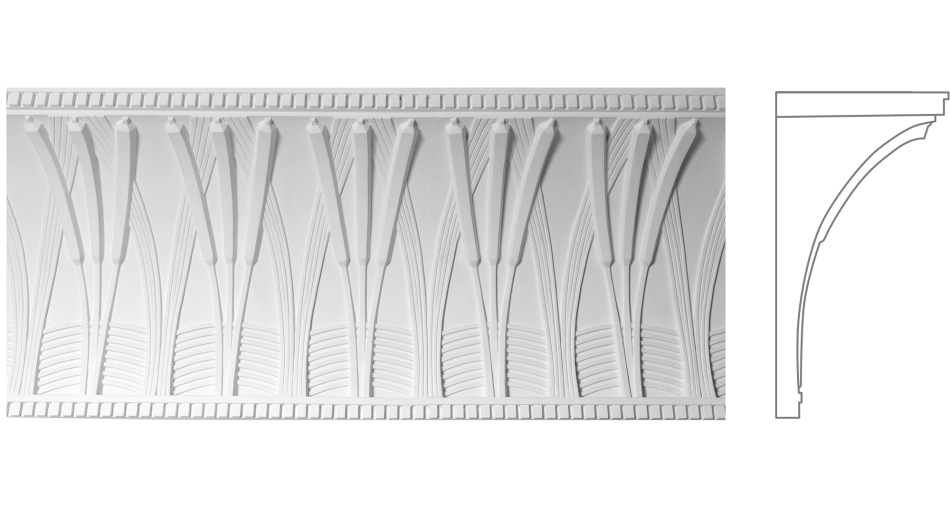 Карниз К-221 додає інтер'єру монументальної класичної архітектурної розкіші. Його вертикальні елементи та багаті органічні форми акцентують архітектурні лінії, надаючи простору почуття мистецької досконалості, архітектурної могутності та палацової величавості.