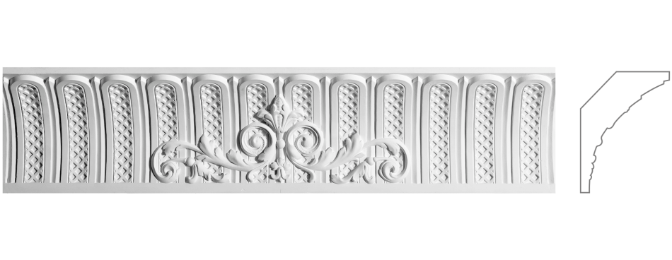 К-225 — гіпсовий карниз висотою 119 мм і довжиною 119 мм, прикрашений витонченим канельованим та розетковим орнаментом. Це архітектурна форма з виключною деталізацією та органічною пластичністю, яка нагадує класичну, ренесансну та палацову архітектуру.