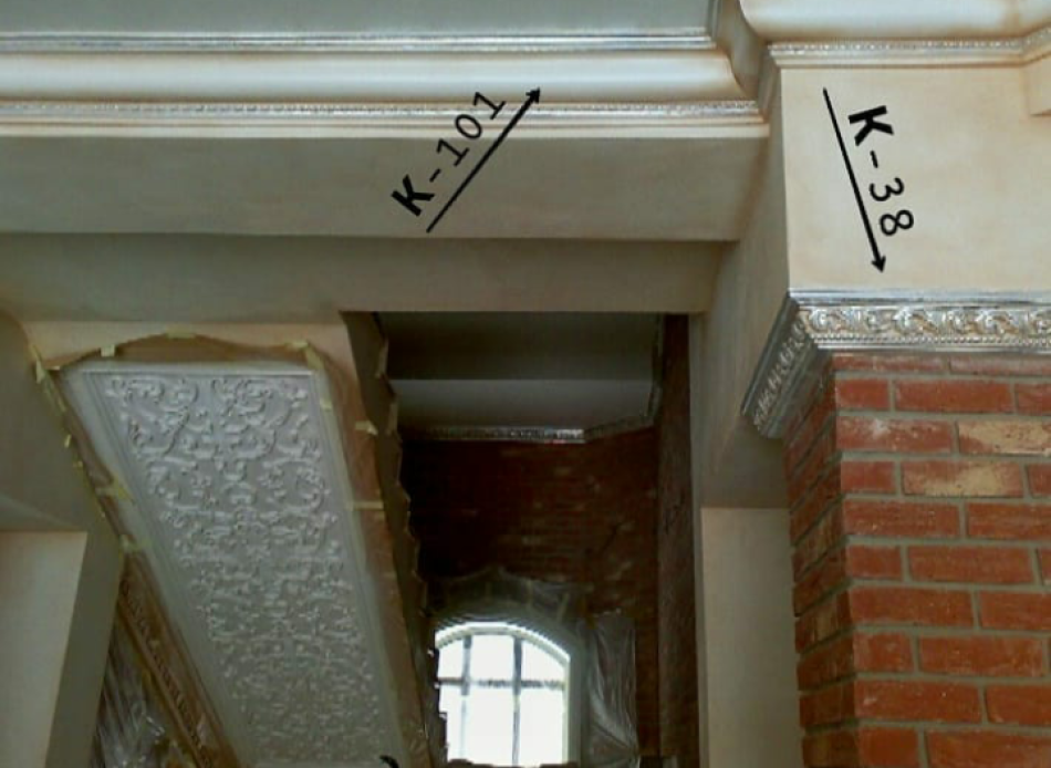 К-38 — гіпсовий карниз висотою 100 мм і довжиною 750 мм, прикрашений вишуканим бароковим акантово-листковим орнаментом. Це архітектурна форма з виключною деталізацією та органічною пластичністю, яка нагадує барокову та класичну архітектуру.