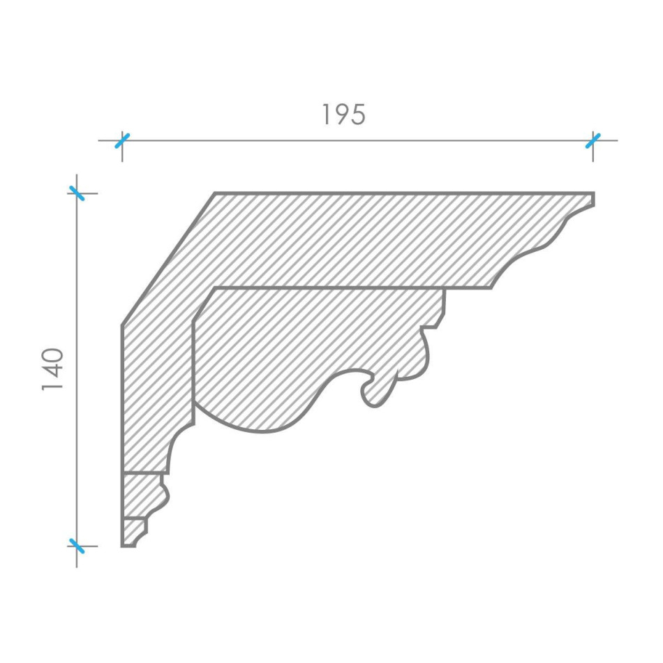 Карниз із гіпсу К-59a h140x195мм — палацова монументальність з модульонами та рельєфним орнаментом