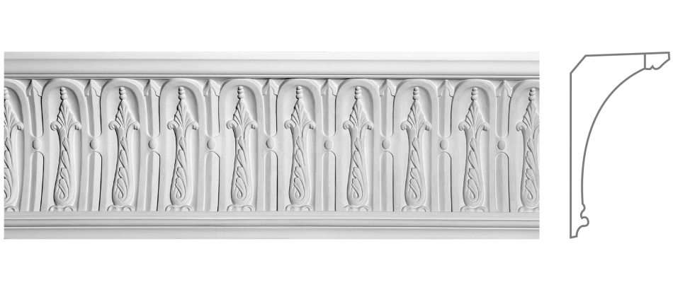Вишуканий, глибоко деталізований рельєф з органічною пластичністю вертикального рифлення та ренесансних форм; Велике розміри (182×105 мм) — ідеальні для створення монументальних архітектурних акцентів та значної деталізації композицій; Натуральний гіпс — екологічний, міцний і довговічний матеріал; Білий колір — класичний і універсальний для різних стилів; Премініум ціна (523 грн./м.п.) — виправдана складністю та деталізацією; Середня довжина (590 мм) — оптимальна для монтажу; Виготовлення під замовлення; Доступна можливість швидкого замовлення (5-10 днів); Доступна 3D-модель для проектування та візуалізації; Гармонійно поєднується з елементами колекції для створення виключної композиції.