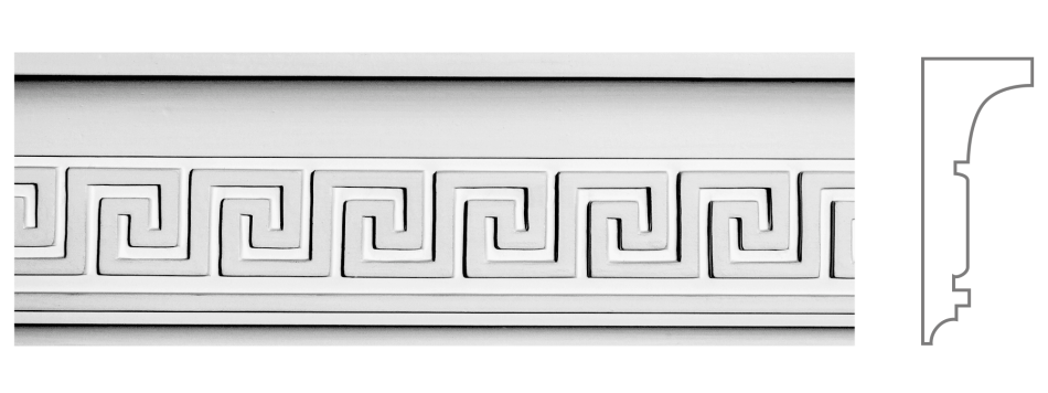 Карниз К-84 додає інтер'єру вишуканої класичної архітектурної величавості. Його геометричний грецький meander узор акцентує архітектурні деталі, надаючи простору почуття мистецької досконалості, дизайнерської вишуканості та класичної величавості з давньогрецькою витонченістю. Ідеально для оформлення переходів між стінами та стелею у салонах, холах та офісних просторах середнього та великого розміру.