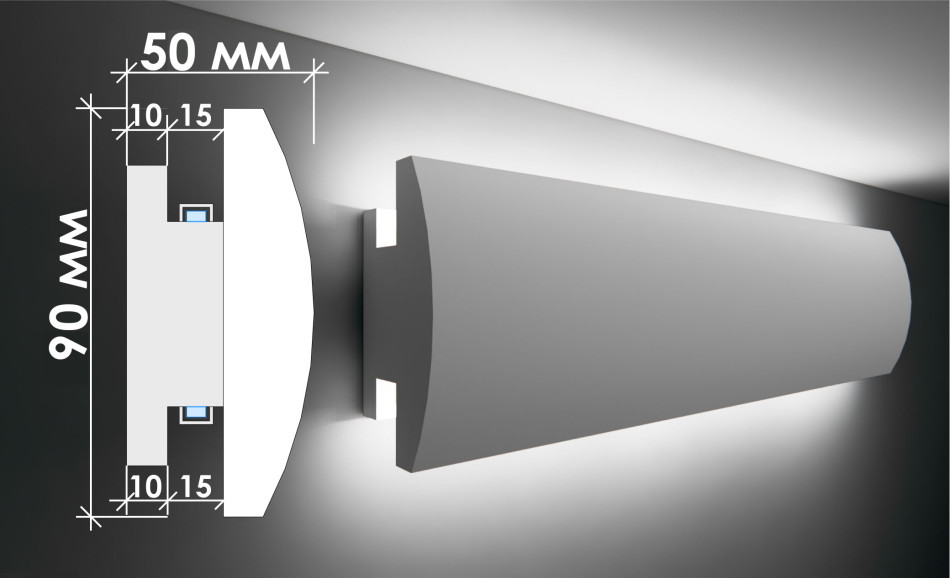 – Створення рівномірного непрямого світлорозповсюдження по периметру стелі з оптимальними габаритами;