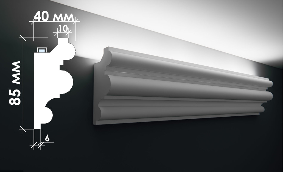 - Висота 85 мм — оптимальна для встроєння світлодіодних світильників з архітектурною виразністю;