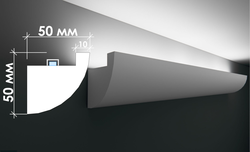 Гіпсовий карниз для скритого освітлення Тс‑25 — сучасна функціональність з закругленим профілем