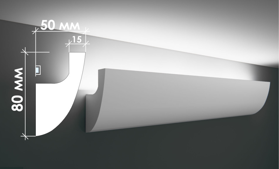 Гіпсовий карниз для скритого освітлення Тс‑29 — сучасна функціональність з кутовим закругленим профілем