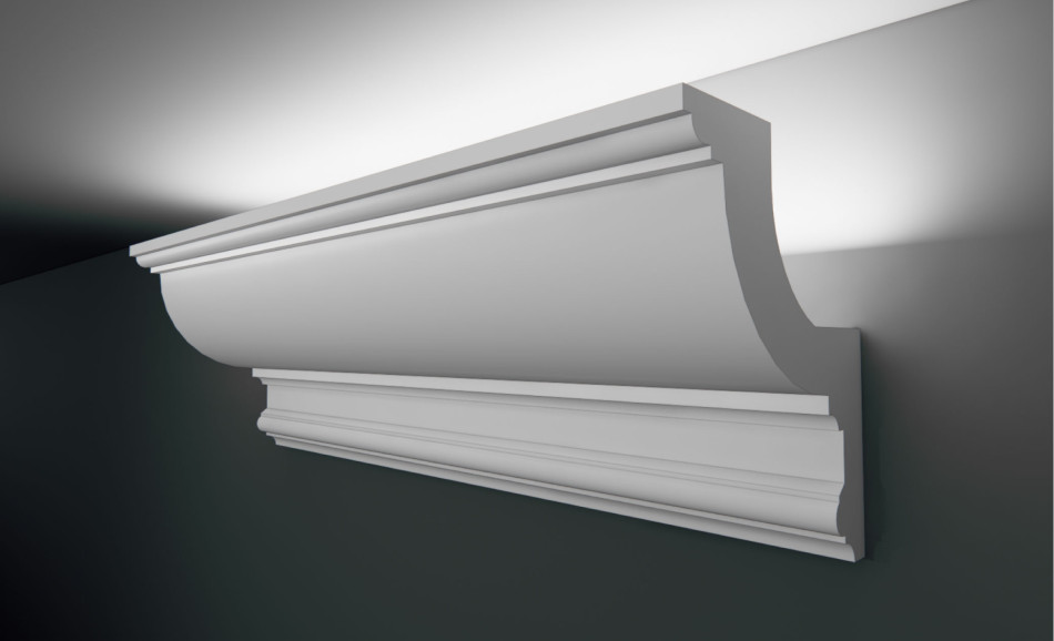 Гіпсовий карниз для скритого освітлення Тс‑35 — сучасна функціональність з вишуканим закругленим профілем