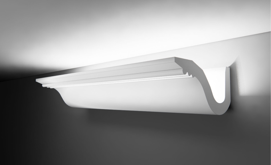 Гіпсовий карниз для скритого освітлення Тс‑38 (Т‑336) — сучасна функціональність з плавним закругленим профілем