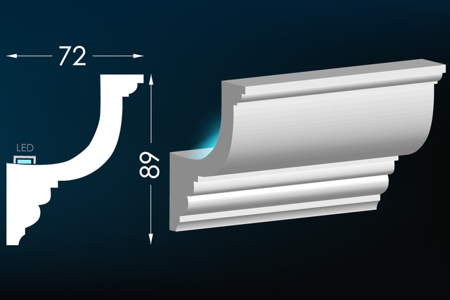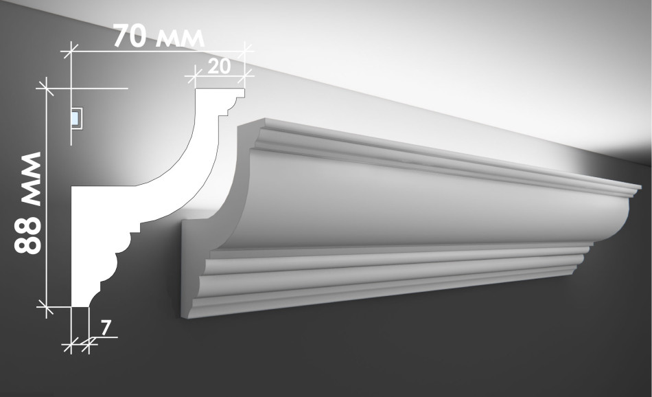 Тс‑39 (Т‑402) — спеціалізований гіпсовий карниз для скритого освітлення висотою 88 мм та шириною 70 мм, розроблений для встроєного монтажу світлодіодних ламп та сучасних систем освітлення з витонченою, архітектурно елегантною конструкцією. Його архітектурний, функціональний профіль з прихованою порожниною та витонченим закруглениям для світильників створює архітектурно елегантний ефект, надаючи інтер'єру утонченості, технологічної витончаності та архітектурної гармонії.