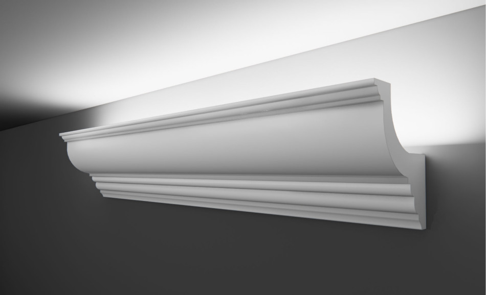 Гіпсовий карниз для скритого освітлення Тс‑39 (Т‑402) — сучасна функціональність з витонченим закругленим профілем