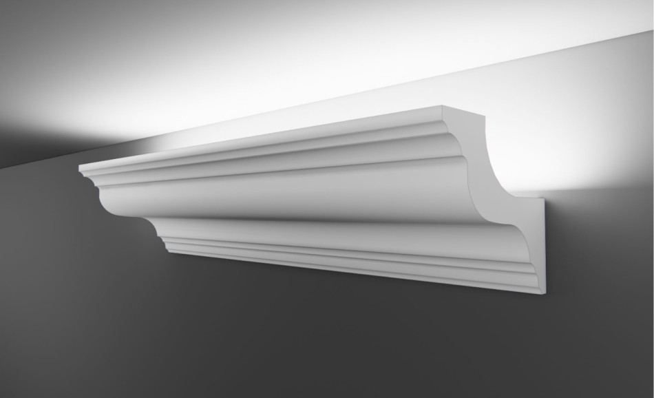 Гіпсовий карниз для скритого освітлення Тс‑40 (Т‑339) — сучасна функціональність з вишуканим закругленим профілем