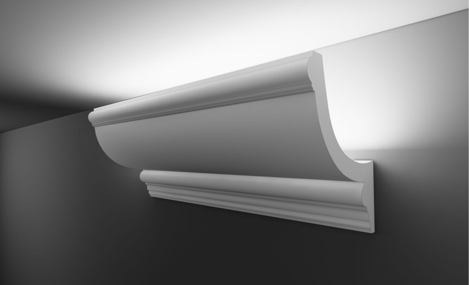 Гіпсовий карниз для скритого освітлення Тс‑44 (Т‑349) — сучасна функціональність з монументальним закругленим профілем