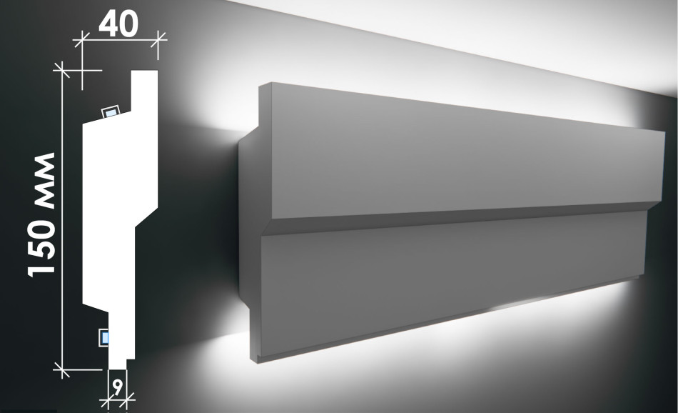 - Висота 150 мм — розширена та архітектурна, ідеальна для просторів із стандартною та підвищеною висотою стелі;