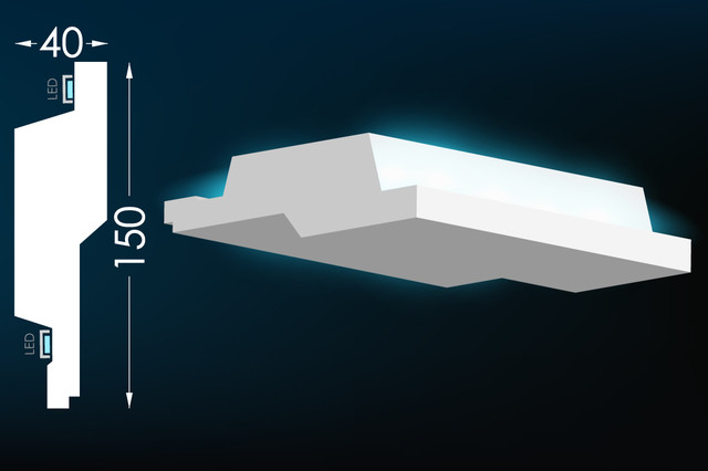 Тс‑49 — спеціалізований гіпсовий карниз для скритого освітлення висотою 150 мм та шириною 40 мм, розроблений для встроєного монтажу світлодіодних ламп та сучасних систем освітлення з геометричною, архітектурно мінімалістичною конструкцією. Його архітектурний, функціональний профіль з прихованою порожниною та геометричним дизайном для світильників створює архітектурно мінімалістичний ефект, надаючи інтер'єру елегантності, технологічної утонченості та архітектурної сучасності.