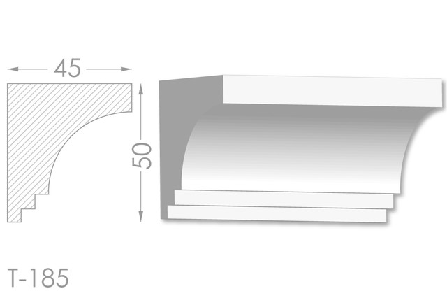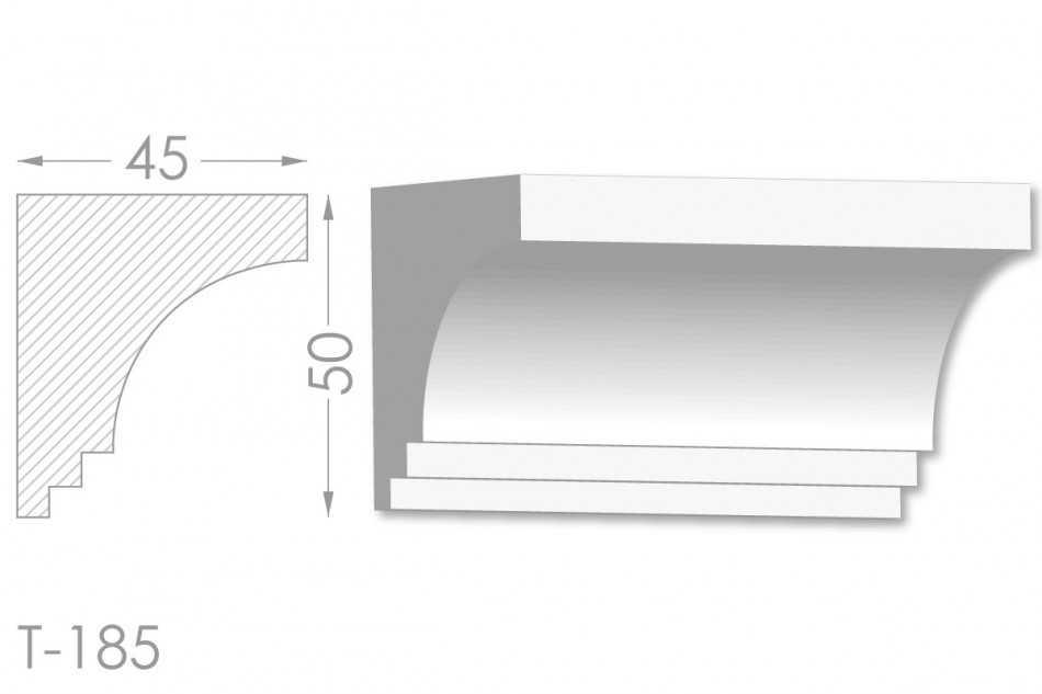 Молдинг – (Тяга) - універсальний декоративний елемент з гіпсу, оригінальної форми, який використовується для кріплення на вертикальну площину. Виріб призначений для декорування внутрішніх стін приміщень. Мета-створення особливого візуального ефекту, зонування стельової області, верхньої частини стін, завершення дизайнерського інтер'єру, внесення «останніх штрихів». Конструкція виконана з якісних матеріалів, колір – білий, відповідний кольору сировини. Молдинг може бути декорований відповідно до обраної колірної гами стилем, пофарбованим в необхідний відтінок. Параметри виробу: висота – 50 мм, ширина – 45 мм.