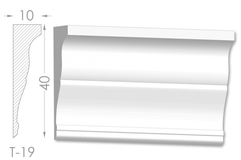 Молдинг – (Тяга) - універсальний декоративний елемент з гіпсу, оригінальної форми, який використовується для кріплення на вертикальну площину. Виріб призначений для декорування внутрішніх стін приміщень. Мета-створення особливого візуального ефекту, зонування стельової області, верхньої частини стін, завершення дизайнерського інтер'єру, внесення «останніх штрихів». Конструкція виконана з якісних матеріалів, колір – білий, відповідний кольору сировини. Молдинг може бути декорований відповідно до обраної колірної гами стилем, пофарбованим в необхідний відтінок. Параметри виробу: висота 40 мм, ширина – 10 мм.