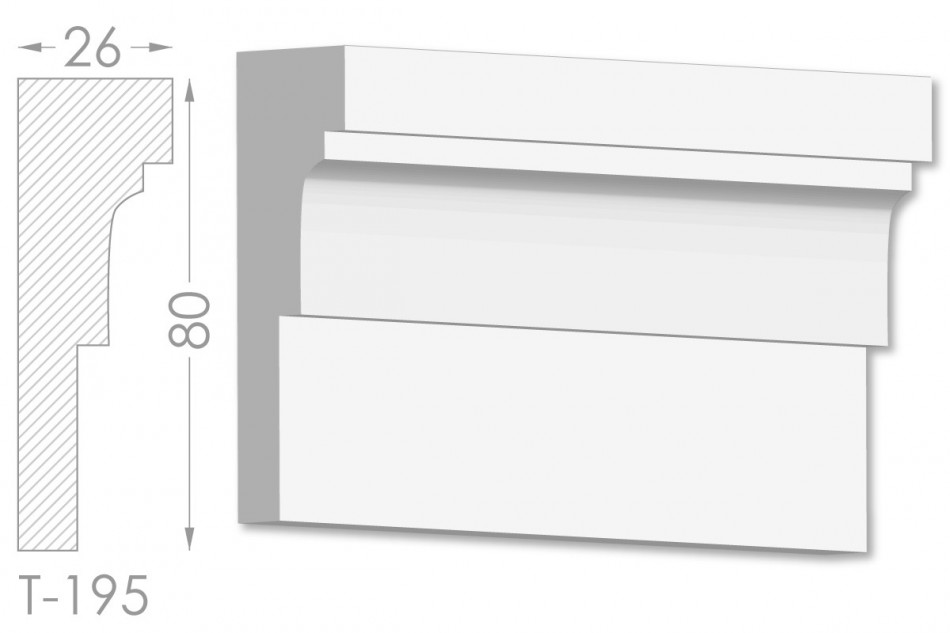 Молдинг – (Тяга) - універсальний декоративний елемент з гіпсу, оригінальної форми, який використовується для кріплення на вертикальну площину. Виріб призначений для декорування внутрішніх стін приміщень. Мета-створення особливого візуального ефекту, зонування стельової області, верхньої частини стін, завершення дизайнерського інтер'єру, внесення «останніх штрихів». Конструкція виконана з якісних матеріалів, колір – білий, відповідний кольору сировини. Молдинг може бути декорований відповідно до обраної колірної гами стилем, пофарбованим в необхідний відтінок. Параметри виробу: висота – 80 мм, ширина – 26 мм.