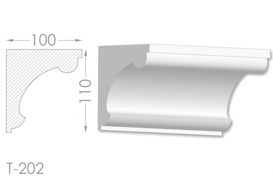 Молдинг – (Тяга) - універсальний декоративний елемент з гіпсу, оригінальної форми, який використовується для кріплення на вертикальну площину. Виріб призначений для декорування внутрішніх стін приміщень. Мета-створення особливого візуального ефекту, зонування стельової області, верхньої частини стін, завершення дизайнерського інтер'єру, внесення «останніх штрихів». Конструкція виконана з якісних матеріалів, колір – білий, відповідний кольору сировини. Молдинг може бути декорований відповідно до обраної колірної гами стилем, пофарбованим в необхідний відтінок. Параметри виробу: висота – 110 мм, ширина – 100 мм.
