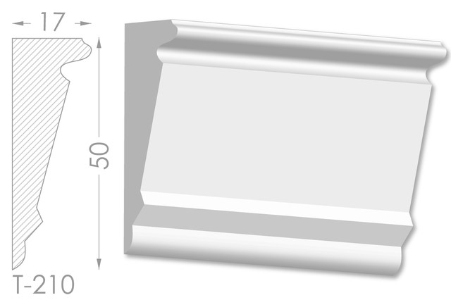 Молдинг – (Тяга) - універсальний декоративний елемент з гіпсу, оригінальної форми, який використовується для кріплення на вертикальну площину. Виріб призначений для декорування внутрішніх стін приміщень. Мета-створення особливого візуального ефекту, зонування стельової області, верхньої частини стін, завершення дизайнерського інтер'єру, внесення «останніх штрихів». Конструкція виконана з якісних матеріалів, колір – білий, відповідний кольору сировини. Молдинг може бути декорований відповідно до обраної колірної гами стилем, пофарбованим в необхідний відтінок. Параметри виробу: висота -50 мм, ширина – 17 мм.