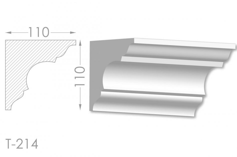 Молдинг – (Тяга) - універсальний декоративний елемент з гіпсу, оригінальної форми, який використовується для кріплення на вертикальну площину. Виріб призначений для декорування внутрішніх стін приміщень. Мета-створення особливого візуального ефекту, зонування стельової області, верхньої частини стін, завершення дизайнерського інтер'єру, внесення «останніх штрихів». Конструкція виконана з якісних матеріалів, колір – білий, відповідний кольору сировини. Молдинг може бути декорований відповідно до обраної колірної гами стилем, пофарбованим в необхідний відтінок. Параметри виробу: висота – 110 мм, ширина – 110 мм.