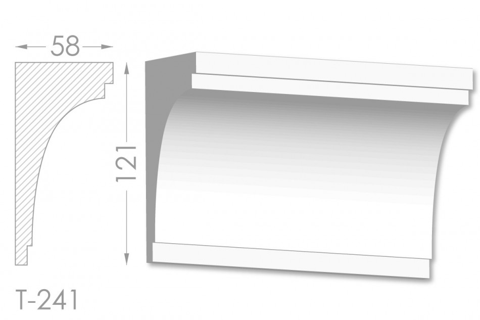 Молдинг – (Тяга) - універсальний декоративний елемент з гіпсу, оригінальної форми, який використовується для кріплення на вертикальну площину. Виріб призначений для декорування внутрішніх стін приміщень. Мета-створення особливого візуального ефекту, зонування стельової області, верхньої частини стін, завершення дизайнерського інтер'єру, внесення «останніх штрихів». Конструкція виконана з якісних матеріалів, колір – білий, відповідний кольору сировини. Молдинг може бути декорований відповідно до обраної колірної гами стилем, пофарбованим в необхідний відтінок. Параметри виробу: висота – 121 мм, ширина – 58 мм.