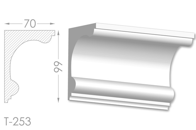 Молдинг – (Тяга) - універсальний декоративний елемент з гіпсу, оригінальної форми, який використовується для кріплення на вертикальну площину. Виріб призначений для декорування внутрішніх стін приміщень. Мета-створення особливого візуального ефекту, зонування стельової області, верхньої частини стін, завершення дизайнерського інтер'єру, внесення «останніх штрихів». Конструкція виконана з якісних матеріалів, колір – білий, відповідний кольору сировини. Молдинг може бути декорований відповідно до обраної колірної гами стилем, пофарбованим в необхідний відтінок. Параметри виробу: висота– 99 мм, ширина – 70 мм.
