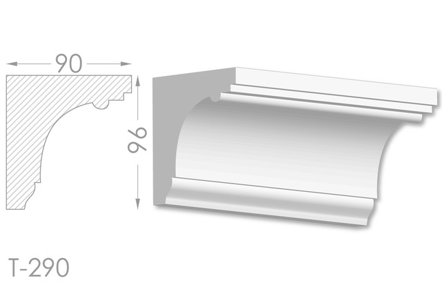 Молдинг – (Тяга) - універсальний декоративний елемент з гіпсу, оригінальної форми, який використовується для кріплення на вертикальну площину. Виріб призначений для декорування внутрішніх стін приміщень. Мета-створення особливого візуального ефекту, зонування стельової області, верхньої частини стін, завершення дизайнерського інтер'єру, внесення «останніх штрихів». Конструкція виконана з якісних матеріалів, колір – білий, відповідний кольору сировини. Молдинг може бути декорований відповідно до обраної колірної гами стилем, пофарбованим в необхідний відтінок. Параметри виробу: висота – 96 мм, ширина – 90 мм.