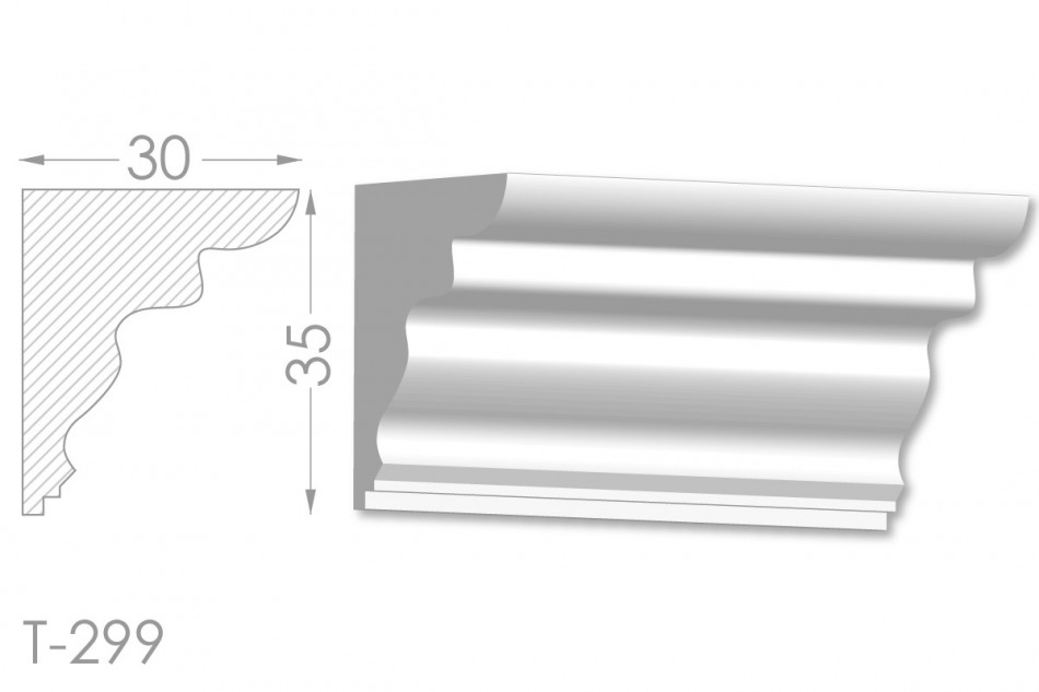 Молдинг – (Тяга) - універсальний декоративний елемент з гіпсу, оригінальної форми, який використовується для кріплення на вертикальну площину. Виріб призначений для декорування внутрішніх стін приміщень. Мета-створення особливого візуального ефекту, зонування стельової області, верхньої частини стін, завершення дизайнерського інтер'єру, внесення «останніх штрихів». Конструкція виконана з якісних матеріалів, колір – білий, відповідний кольору сировини. Молдинг може бути декорований відповідно до обраної колірної гами стилем, пофарбованим в необхідний відтінок. Параметри виробу: висота – 35 мм, ширина – 30 мм.