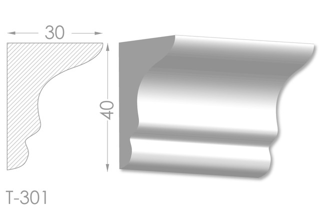 Молдинг – (Тяга) - універсальний декоративний елемент з гіпсу, оригінальної форми, який використовується для кріплення на вертикальну площину. Виріб призначений для декорування внутрішніх стін приміщень. Мета-створення особливого візуального ефекту, зонування стельової області, верхньої частини стін, завершення дизайнерського інтер'єру, внесення «останніх штрихів». Конструкція виконана з якісних матеріалів, колір – білий, відповідний кольору сировини. Молдинг може бути декорований відповідно до обраної колірної гами стилем, пофарбованим в необхідний відтінок. Параметри виробу: висота – 40 мм, ширина – 30 мм.