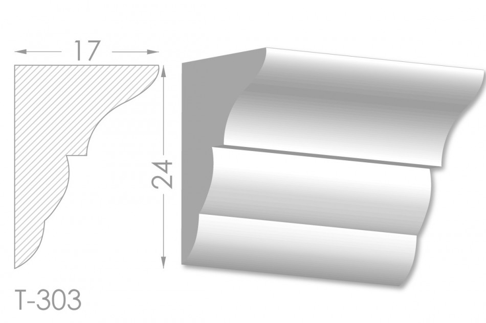 Молдинг – (Тяга) - універсальний декоративний елемент з гіпсу, оригінальної форми, який використовується для кріплення на вертикальну площину. Виріб призначений для декорування внутрішніх стін приміщень. Мета-створення особливого візуального ефекту, зонування стельової області, верхньої частини стін, завершення дизайнерського інтер'єру, внесення «останніх штрихів». Конструкція виконана з якісних матеріалів, колір – білий, відповідний кольору сировини. Молдинг може бути декорований відповідно до обраної колірної гами стилем, пофарбованим в необхідний відтінок. Параметри виробу: висота – 24 мм, ширина – 17 мм.