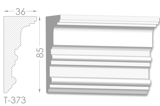 Молдинг – (Тяга) - універсальний декоративний елемент з гіпсу, оригінальної форми, який використовується для кріплення на вертикальну площину. Виріб призначений для декорування внутрішніх стін приміщень. Мета-створення особливого візуального ефекту, зонування стельової області, верхньої частини стін, завершення дизайнерського інтер'єру, внесення «останніх штрихів». Конструкція виконана з якісних матеріалів, колір – білий, відповідний кольору сировини. Молдинг може бути декорований відповідно до обраної колірної гами стилем, пофарбованим в необхідний відтінок. Параметри виробу: висота – 85 мм, ширина – 36 мм.