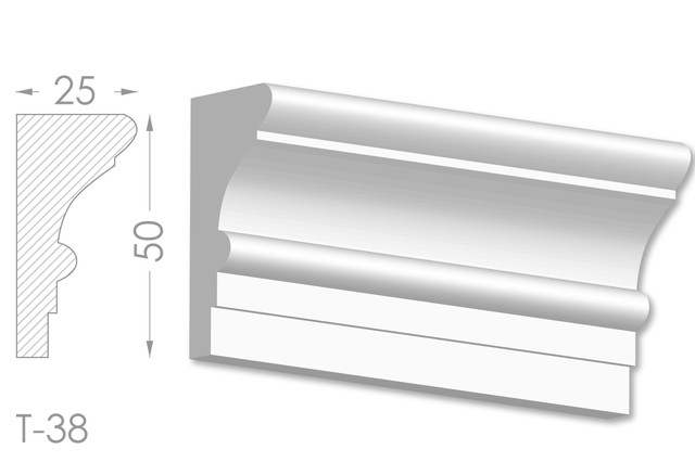 Молдинг – (Тяга) - універсальний декоративний елемент з гіпсу, оригінальної форми, який використовується для кріплення на вертикальну площину. Виріб призначений для декорування внутрішніх стін приміщень. Мета-створення особливого візуального ефекту, зонування стельової області, верхньої частини стін, завершення дизайнерського інтер'єру, внесення «останніх штрихів». Конструкція виконана з якісних матеріалів, колір – білий, відповідний кольору сировини. Молдинг може бути декорований відповідно до обраної колірної гами стилем, пофарбованим в необхідний відтінок. Параметри виробу: висота – 50 мм, ширина – 25 мм.