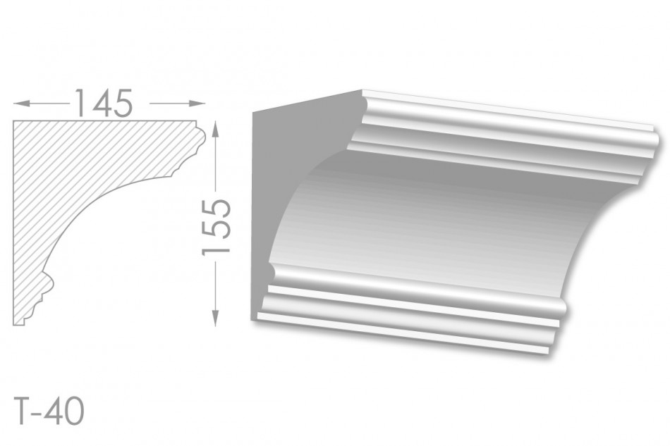 Молдинг – (Тяга) - універсальний декоративний елемент з гіпсу, оригінальної форми, який використовується для кріплення на вертикальну площину. Виріб призначений для декорування внутрішніх стін приміщень. Мета-створення особливого візуального ефекту, зонування стельової області, верхньої частини стін, завершення дизайнерського інтер'єру, внесення «останніх штрихів». Конструкція виконана з якісних матеріалів, колір – білий, відповідний кольору сировини. Молдинг може бути декорований відповідно до обраної колірної гами стилем, пофарбованим в необхідний відтінок. Параметри виробу: висота – 155 мм, ширина – 145 мм.