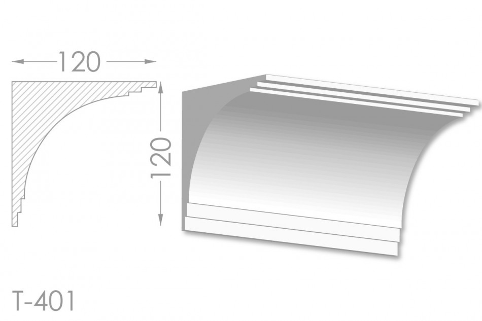 Молдинг – (Тяга) - універсальний декоративний елемент з гіпсу, оригінальної форми, який використовується для кріплення на вертикальну площину. Виріб призначений для декорування внутрішніх стін приміщень. Мета-створення особливого візуального ефекту, зонування стельової області, верхньої частини стін, завершення дизайнерського інтер'єру, внесення «останніх штрихів». Конструкція виконана з якісних матеріалів, колір – білий, відповідний кольору сировини. Молдинг може бути декорований відповідно до обраної колірної гами стилем, пофарбованим в необхідний відтінок. Параметри виробу: висота – 120 мм, ширина – 120 мм.