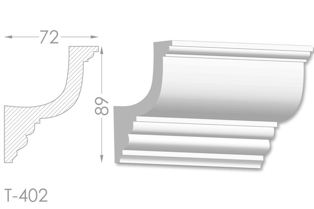 Молдинг – (Тяга) - універсальний декоративний елемент з гіпсу, оригінальної форми, який використовується для кріплення на вертикальну площину. Виріб призначений для декорування внутрішніх стін приміщень. Мета-створення особливого візуального ефекту, зонування стельової області, верхньої частини стін, завершення дизайнерського інтер'єру, внесення «останніх штрихів». Конструкція виконана з якісних матеріалів, колір – білий, відповідний кольору сировини. Молдинг може бути декорований відповідно до обраної колірної гами стилем, пофарбованим в необхідний відтінок. Параметри виробу: висота – 89 мм, ширина – 72 мм.