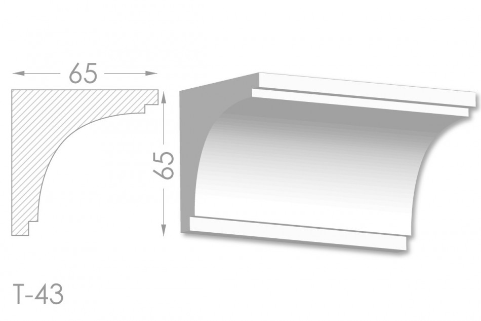 Молдинг – (Тяга) - універсальний декоративний елемент з гіпсу, оригінальної форми, який використовується для кріплення на вертикальну площину. Виріб призначений для декорування внутрішніх стін приміщень. Мета-створення особливого візуального ефекту, зонування стельової області, верхньої частини стін, завершення дизайнерського інтер'єру, внесення «останніх штрихів». Конструкція виконана з якісних матеріалів, колір – білий, відповідний кольору сировини. Молдинг може бути декорований відповідно до обраної колірної гами стилем, пофарбованим в необхідний відтінок. Параметри виробу: висота – 65 мм, ширина – 65 мм.