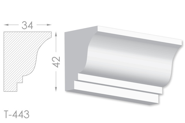 Молдинг – (Тяга) - універсальний декоративний елемент з гіпсу, оригінальної форми, який використовується для кріплення на вертикальну площину. Виріб призначений для декорування внутрішніх стін приміщень. Мета-створення особливого візуального ефекту, зонування стельової області, верхньої частини стін, завершення дизайнерського інтер'єру, внесення «останніх штрихів». Конструкція виконана з якісних матеріалів, колір – білий, відповідний кольору сировини. Молдинг може бути декорований відповідно до обраної колірної гами стилем, пофарбованим в необхідний відтінок. Параметри виробу: висота – 42 мм, ширина – 34 мм.