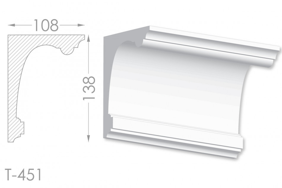 Молдинг – (Тяга) - універсальний декоративний елемент з гіпсу, оригінальної форми, який використовується для кріплення на вертикальну площину. Виріб призначений для декорування внутрішніх стін приміщень. Мета-створення особливого візуального ефекту, зонування стельової області, верхньої частини стін, завершення дизайнерського інтер'єру, внесення «останніх штрихів». Конструкція виконана з якісних матеріалів, колір – білий, відповідний кольору сировини. Молдинг може бути декорований відповідно до обраної колірної гами стилем, пофарбованим в необхідний відтінок. Параметри виробу: висота – 138 мм, ширина – 108 мм.