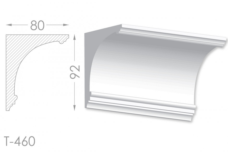 Молдинг – (Тяга) - універсальний декоративний елемент з гіпсу, оригінальної форми, який використовується для кріплення на вертикальну площину. Виріб призначений для декорування внутрішніх стін приміщень. Мета-створення особливого візуального ефекту, зонування стельової області, верхньої частини стін, завершення дизайнерського інтер'єру, внесення «останніх штрихів». Конструкція виконана з якісних матеріалів, колір – білий, відповідний кольору сировини. Молдинг може бути декорований відповідно до обраної колірної гами стилем, пофарбованим в необхідний відтінок. Параметри виробу: висота – 92 мм, ширина – 80 мм.