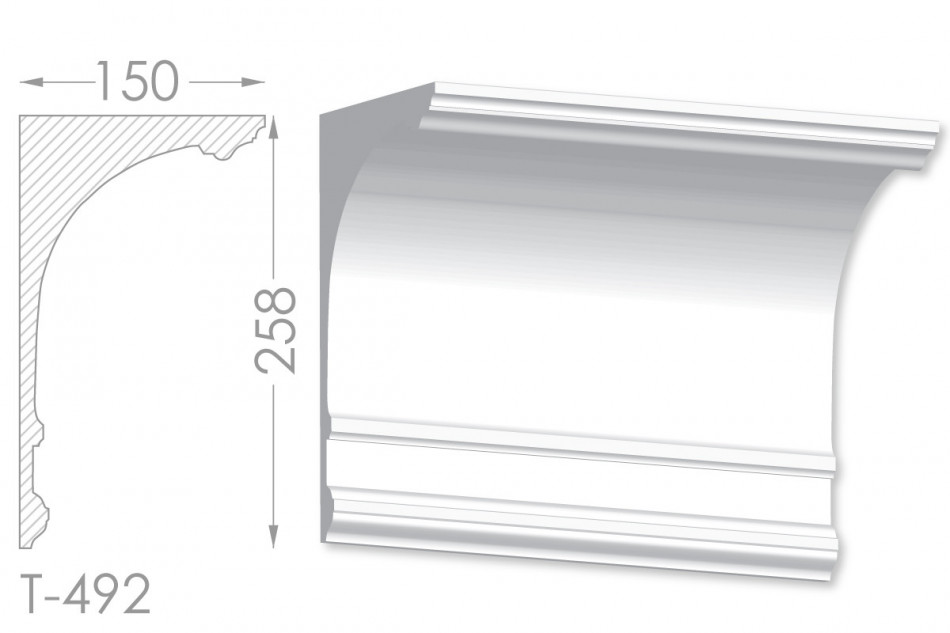 Молдинг – (Тяга) - універсальний декоративний елемент з гіпсу, оригінальної форми, який використовується для кріплення на вертикальну площину. Виріб призначений для декорування внутрішніх стін приміщень. Мета-створення особливого візуального ефекту, зонування стельової області, верхньої частини стін, завершення дизайнерського інтер'єру, внесення «останніх штрихів». Конструкція виконана з якісних матеріалів, колір – білий, відповідний кольору сировини. Молдинг може бути декорований відповідно до обраної колірної гами стилем, пофарбованим в необхідний відтінок. Параметри виробу: висота – 258 мм, ширина – 150 мм.