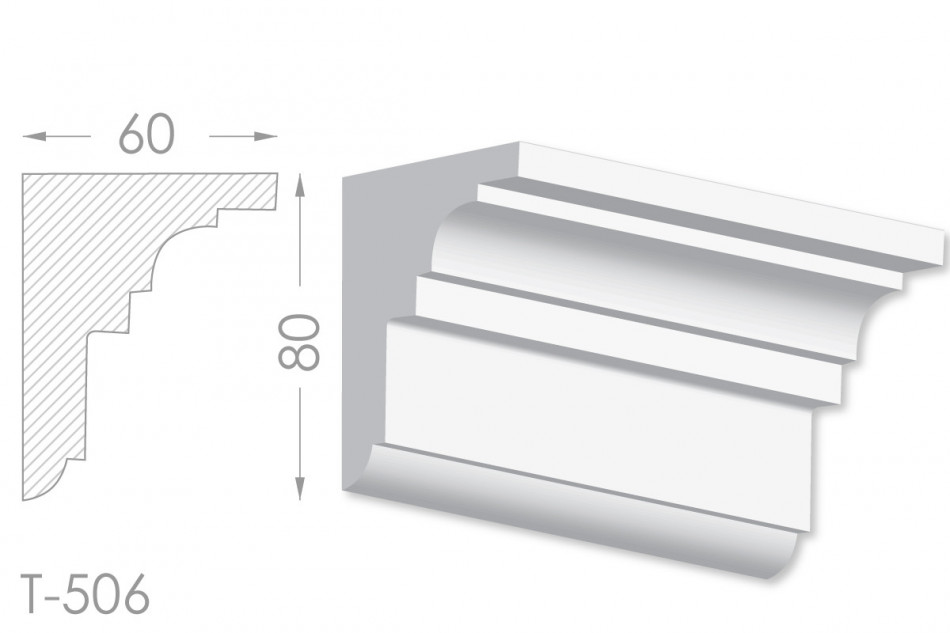 Молдинг – (Тяга) - універсальний декоративний елемент з гіпсу, оригінальної форми, який використовується для кріплення на вертикальну площину. Виріб призначений для декорування внутрішніх стін приміщень. Мета-створення особливого візуального ефекту, зонування стельової області, верхньої частини стін, завершення дизайнерського інтер'єру, внесення «останніх штрихів». Конструкція виконана з якісних матеріалів, колір – білий, відповідний кольору сировини. Молдинг може бути декорований відповідно до обраної колірної гами стилем, пофарбованим в необхідний відтінок. Параметри виробу: висота – 80 мм, ширина – 60 мм.
