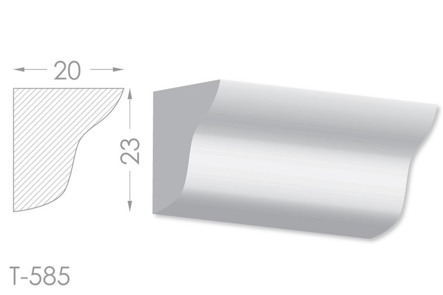 Молдинг – (Тяга) - універсальний декоративний елемент з гіпсу, оригінальної форми, який використовується для кріплення на вертикальну площину. Виріб призначений для декорування внутрішніх стін приміщень. Мета-створення особливого візуального ефекту, зонування стельової області, верхньої частини стін, завершення дизайнерського інтер'єру, внесення «останніх штрихів». Конструкція виконана з якісних матеріалів, колір – білий, відповідний кольору сировини. Молдинг може бути декорований відповідно до обраної колірної гами стилем, пофарбованим в необхідний відтінок. Параметри виробу: висота – 23 мм, ширина – 20 мм.