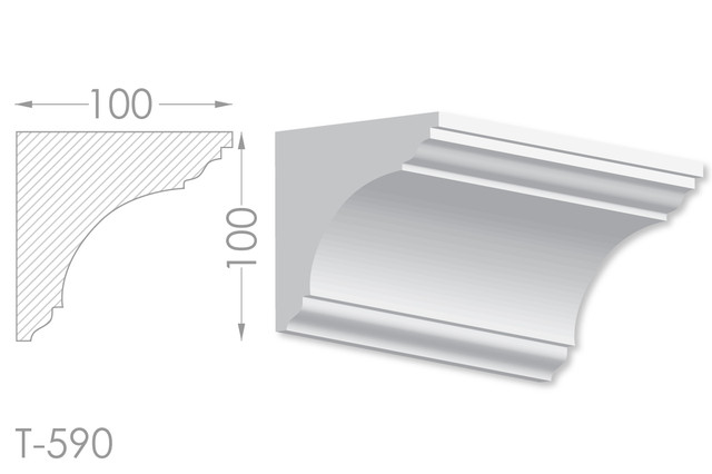 Молдинг – (Тяга) - універсальний декоративний елемент з гіпсу, оригінальної форми, який використовується для кріплення на вертикальну площину. Виріб призначений для декорування внутрішніх стін приміщень. Мета-створення особливого візуального ефекту, зонування стельової області, верхньої частини стін, завершення дизайнерського інтер'єру, внесення «останніх штрихів». Конструкція виконана з якісних матеріалів, колір – білий, відповідний кольору сировини. Молдинг може бути декорований відповідно до обраної колірної гами стилем, пофарбованим в необхідний відтінок. Параметри виробу: висота – 100 мм, ширина – 100 мм.