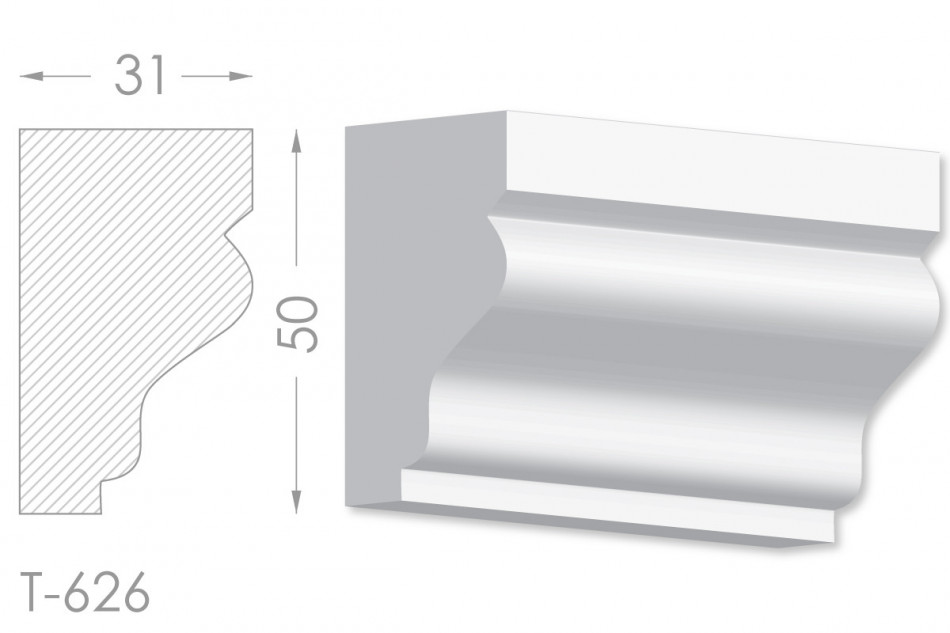 Молдинг – (Тяга) - універсальний декоративний елемент з гіпсу, оригінальної форми, який використовується для кріплення на вертикальну площину. Виріб призначений для декорування внутрішніх стін приміщень. Мета-створення особливого візуального ефекту, зонування стельової області, верхньої частини стін, завершення дизайнерського інтер'єру, внесення «останніх штрихів». Конструкція виконана з якісних матеріалів, колір – білий, відповідний кольору сировини. Молдинг може бути декорований відповідно до обраної колірної гами стилем, пофарбованим в необхідний відтінок. Параметри виробу: висота – 50 мм, ширина – 31 мм.