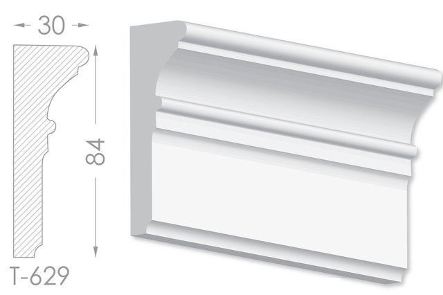 Молдинг – (Тяга) - універсальний декоративний елемент з гіпсу, оригінальної форми, який використовується для кріплення на вертикальну площину. Виріб призначений для декорування внутрішніх стін приміщень. Мета-створення особливого візуального ефекту, зонування стельової області, верхньої частини стін, завершення дизайнерського інтер'єру, внесення «останніх штрихів». Конструкція виконана з якісних матеріалів, колір – білий, відповідний кольору сировини. Молдинг може бути декорований відповідно до обраної колірної гами стилем, пофарбованим в необхідний відтінок. Параметри виробу: висота – 84 мм, ширина – 30 мм.