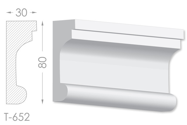 Молдинг – (Тяга) - універсальний декоративний елемент з гіпсу, оригінальної форми, який використовується для кріплення на вертикальну площину. Виріб призначений для декорування внутрішніх стін приміщень. Мета-створення особливого візуального ефекту, зонування стельової області, верхньої частини стін, завершення дизайнерського інтер'єру, внесення «останніх штрихів». Конструкція виконана з якісних матеріалів, колір – білий, відповідний кольору сировини. Молдинг може бути декорований відповідно до обраної колірної гами стилем, пофарбованим в необхідний відтінок. Параметри виробу: висота – 80 мм, ширина – 30 мм.