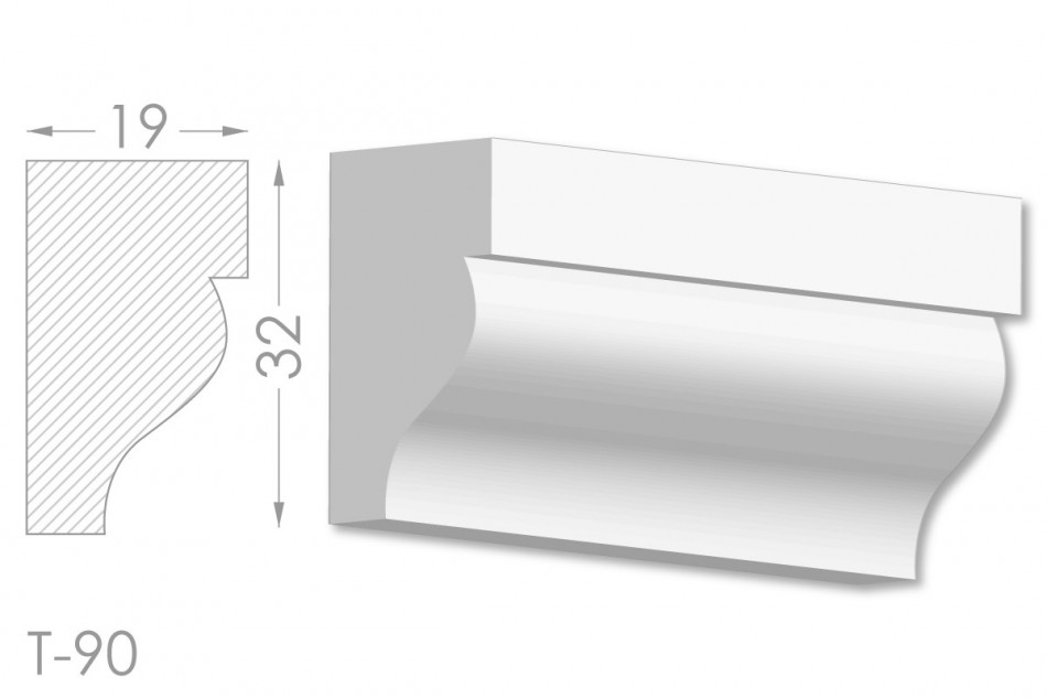 Молдинг – (Тяга) - універсальний декоративний елемент з гіпсу, оригінальної форми, який використовується для кріплення на вертикальну площину. Виріб призначений для декорування внутрішніх стін приміщень. Мета-створення особливого візуального ефекту, зонування стельової області, верхньої частини стін, завершення дизайнерського інтер'єру, внесення «останніх штрихів». Конструкція виконана з якісних матеріалів, колір – білий, відповідний кольору сировини. Молдинг може бути декорований відповідно до обраної колірної гами стилем, пофарбованим в необхідний відтінок. Параметри виробу: висота – 32 мм, ширина – 19 мм.