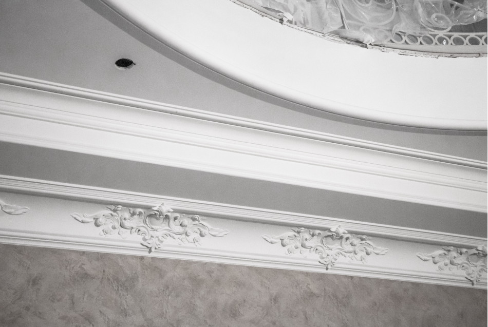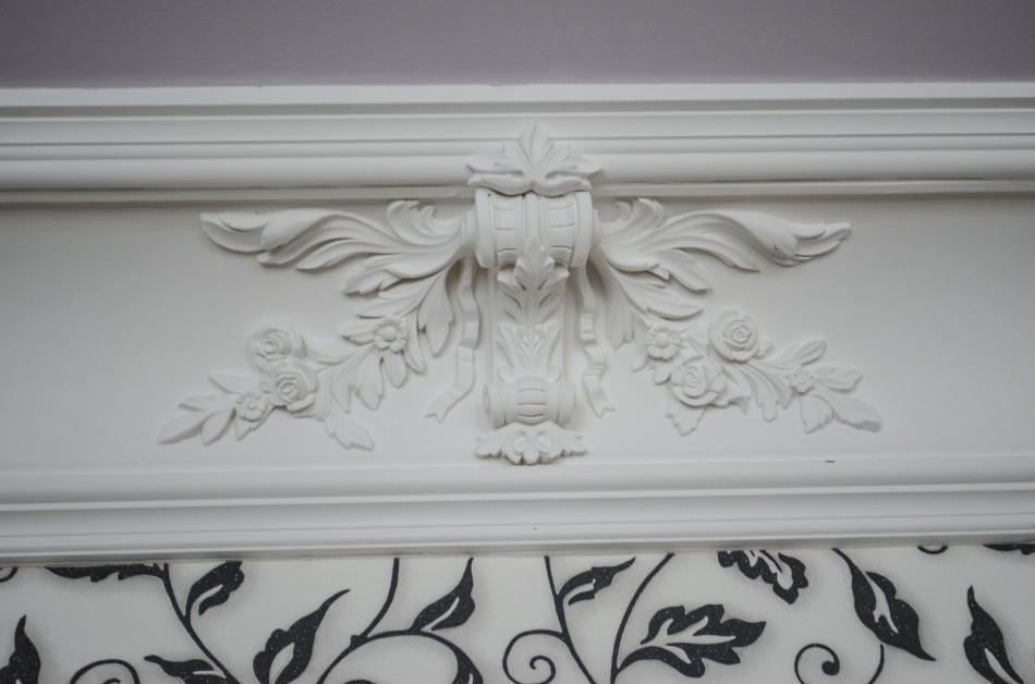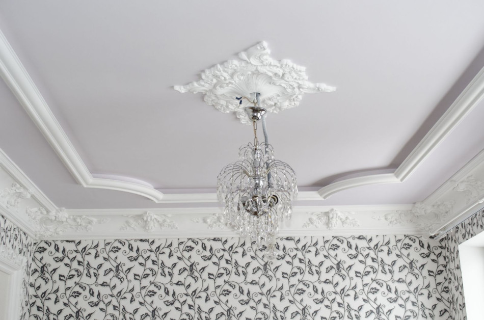 Також за допомогою кесонів, розеток і фризів можна до невпізнання перетворити звичайну рівну стелю, надавши йому рельєфності