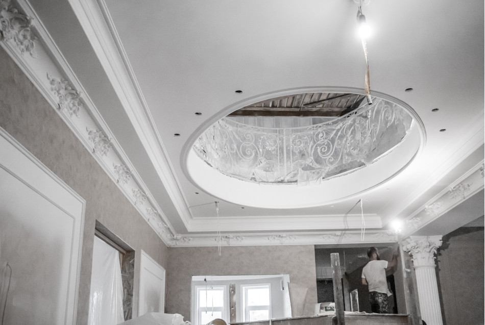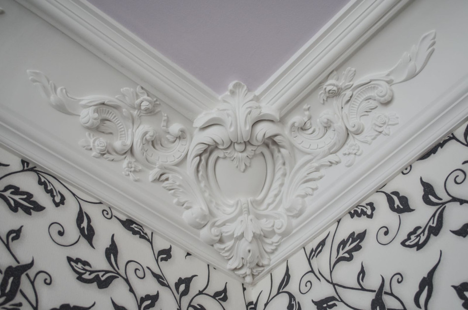 Стелі з гіпсовими карнизами дозволяють візуально скорегувати геометрію приміщення